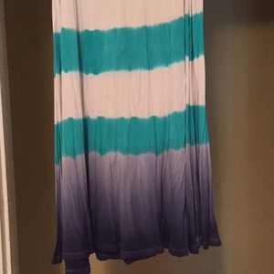 EUC. Beautiful, soft ombré maxi with tie dyed affect. White, teal and navy stripes. Can be worn as maxi or tube dress. Great for spring and summer!