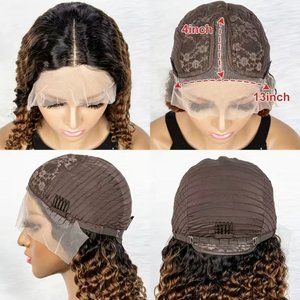 Ombré Natural Black/Blonde (1B/27) T Part 13x4x1 Lace Frontal Brazilian Human Hair Deep Wave Wig
