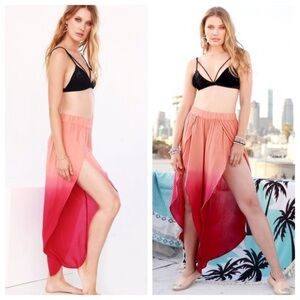 Luxury Resort Peach and Navy Blue Ombré Tulip Hem Pants. Macchia di Ruggine is the label on these Pretty, flowy, Ombré Tulip 🌷 Hem Pants.