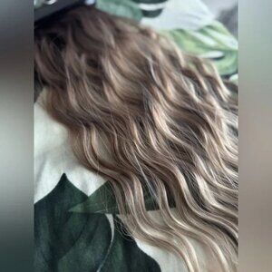 Enhance your look with these stunning ombre brown and blonde wavy hair extensions. Perfect for adding volume and length.