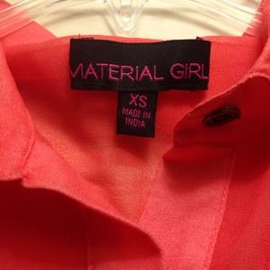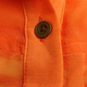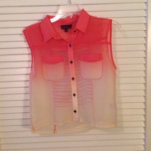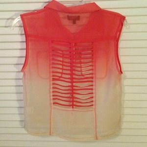 A sheer coral to white collared top. Has buttons all the way up and has two front pockets. Also has a cool caged back. Bought from Macys.