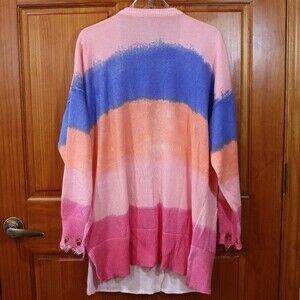 Ombre Colorful Distressed Ombre Cardigan Sweater Lightweight XXL Trendy