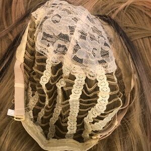 Ombre Wig Dark Blonde/Black Synthetic Silky Hair Adjustable Mesh Laced Cap