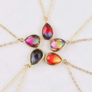 Ombre Crystal Teardrop Pendant Necklace Red Blue