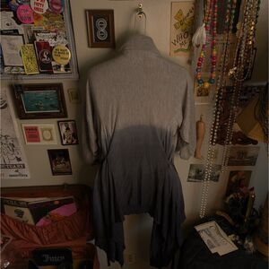 Ombre Dyed Tied Cardigan Women's Small Gray Navy Blue Short Sleeve Wrap