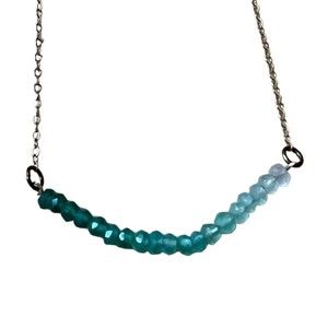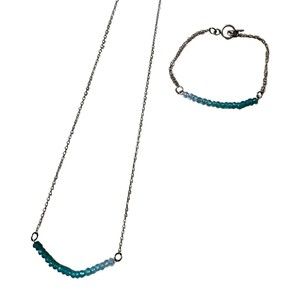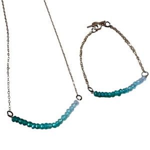 Matching set of Emerald Beaded Bar Necklace and bracelet, dainty with faceted beads in ombre patterns. Gold filled. Handmade.