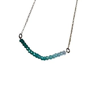 Ombre Emerald Beaded Curved Bar Gold Fill Necklace and Bracelet Set May Birthday