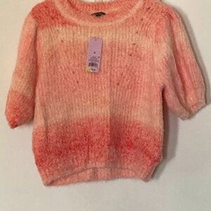 Feminine, spring style with short sleeves measuring 11.5" kinda puff knit sleeve fashion, full body length 19" with hi-low style in hem