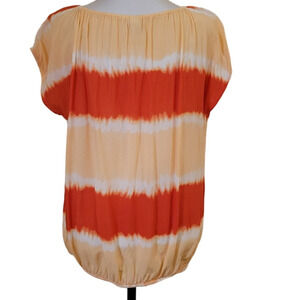 Old Navy, Orange & White, Ombre, Short Sleeve, Peasant Top. elastic neckline and waist, round neck