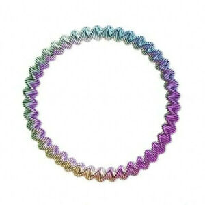 Stretch twisted steel bracelet features a baked on enamel color rainbow (blues, greens, pinks, and more) and measures 7-1/2 inches without stretching