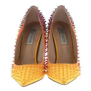 Excellent condition. Steve Madden ombre yellow, orange, red, burgundy heels. Spiked studs all over. high heel. appx. 4". Size 7.5.