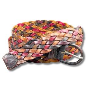 Omega Braided Leather Belt Women's Size Large, 38" Multicolor Woven, Leather Covered Buckle, Adjustable