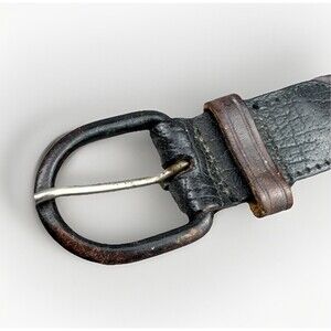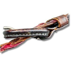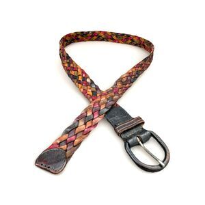 Omega Braided Belt Leather Wmn L 38" Multicolor Woven Leather Covered Buckle VTG