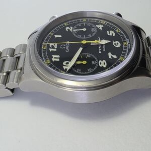 Cool neo-vintage Omega Dynamic III automatic—military-style black Dial ref. 175.0310 / 5240.50 38mm, a late‑1990s automatic pilot‑style chronograph. Became a bit of a hidden gem and described as the most underated chronograph from Omega and sought after due to rarity and Uniqueness.