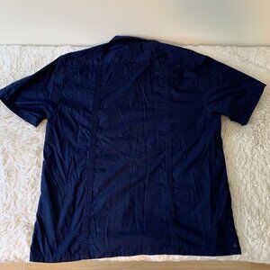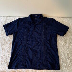 Omega Fashion Cuban Men's Blue Short Sleeve Button Up- Size XL 17-17 1/2