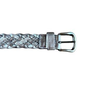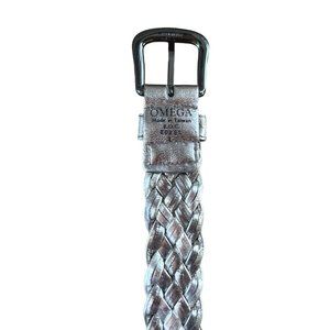 Omega's silver metallic braided belt in size large adds a stylish touch to any outfit. It's both durable and adjustable for the perfect fit.