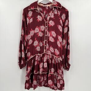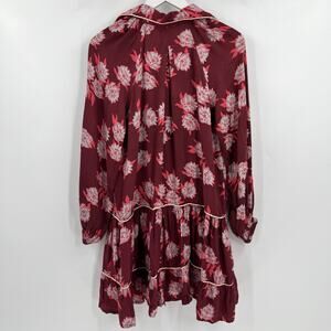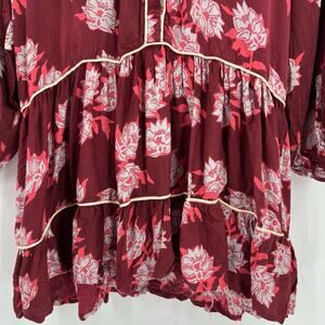 Omika Ezra Button Up Blouse Top in Isla Merlot Red Floral Print Women’s Size XS