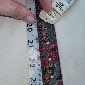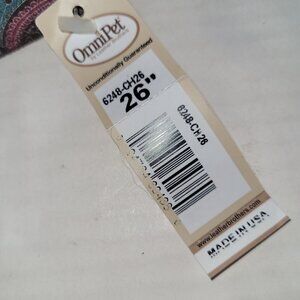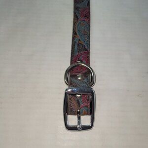 New condition dog collar in pretty paisley pattern sized as 26", but that is total length of collar. Too big for my dogs. Would fit best on a 21-23" neck dog.