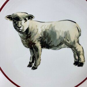 Omniware 8.5" Stoneware Sheep Salad Plate Red Rim Vintage