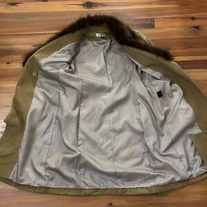 Omon Camel Brown Wool Cashmere Winter Coat Fox Fur Collar Womens Size 14 Belt
