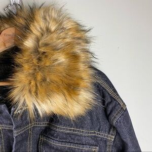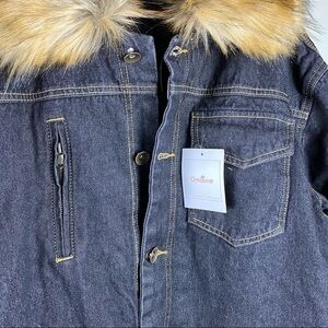 Omoone: Longline Chunky Jean Winter Jacket Faux Fur Distressed Denim XXL (NWT)