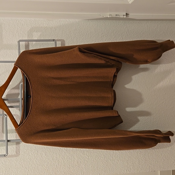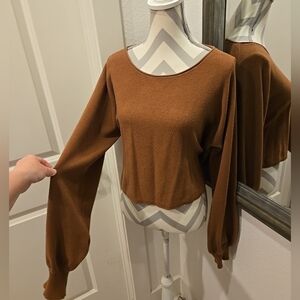 On 12th brown bubble sleeve cropped sweater round neck buttery soft material size xl women's