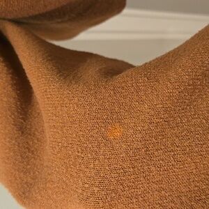 Has a small hole in front bottom and on shoulder. A couple of small stains on arm. Please see photos.