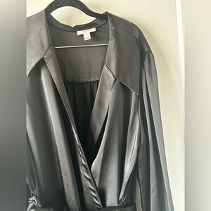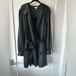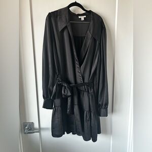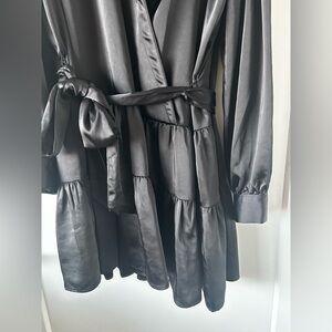 Measurements in photos Unlined Self-tie closures at waist A-lined wrap silhouette