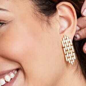 On 34th Chain Link Earrings Drop Statement Gold Tone NWT