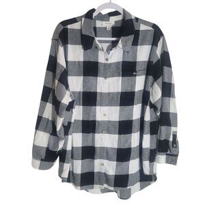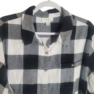On 34th Flannel Button Up Shirt Women's XL Black White Plaid Fall Autumn Classic