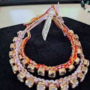 🎁On 34th Friendship Bracelet set of 2 Colorful Braided duo w/ Faux Stones