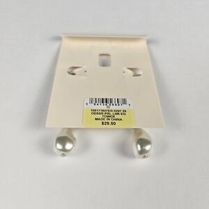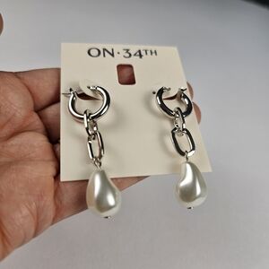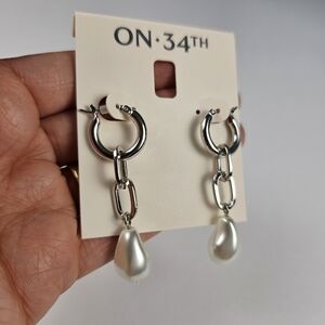 On 34th Imitation Pearl Drop Earrings Linear Chain Silver Chunky