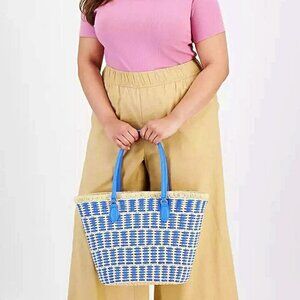 On 34th Isabellaa Women's Straw Medium Drawstring Tote Blue Stripe (MSRP $130)