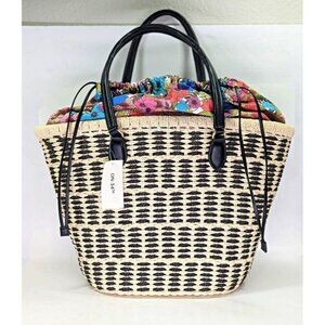 On 34th Isabellaa Women's Straw Medium Drawstring Tote Botanical (MSRP $130)