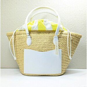 On 34th Isabellaa Women's Straw Medium Drawstring Tote White Lime (MSRP $130)
