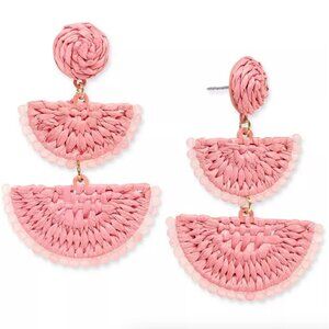 On 34th Raffia Drop Earrings Gold Tone Stone Bead & Woven NWT