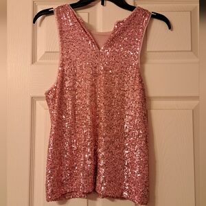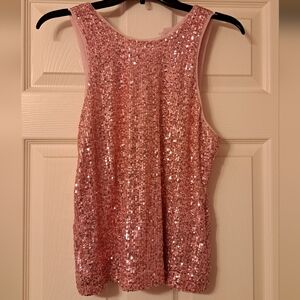 On 34th Size S Sequin Pink Sleeveless Party Tank Top