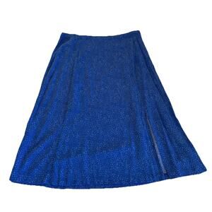 On 34th Women’s Blue Animal Print Midi Lightweight Skirt Large Viscose Side Zip