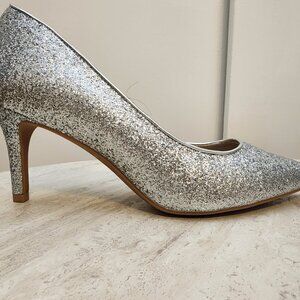 On 34th Womens Jeules Pointed-Toe Sli Silver Glitter 8M