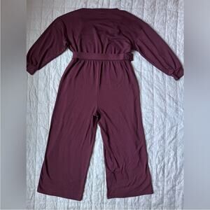 On 34th Women's Maroon Knit V-Neck Long Sleeve Wide Leg Jumpsuit - XXL