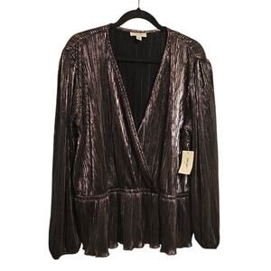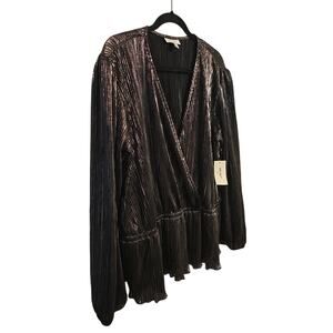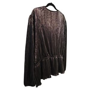 On 34th Women’s Plus Party Top – Size 1X – Black/Gunmetal Metallic Pleats