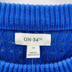On 34th Womens Plus Size 2X Crewneck Spring Cotton-Blend Cable-Knit Sweater $59