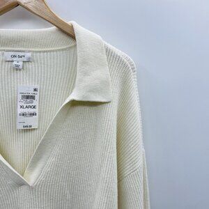On 34th Womens Size XL Collared V-Neck Ribbed Sweater in Alabaster Cream $49
