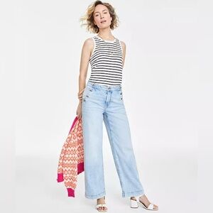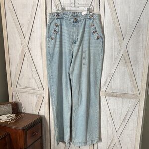 Brand new with tags NWT high rise sailor style wide leg light wash jeans.