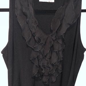On Carnaby ruffled top. No size tag but it measures close to a medium. P to P 17” length 26”. In very good condition.