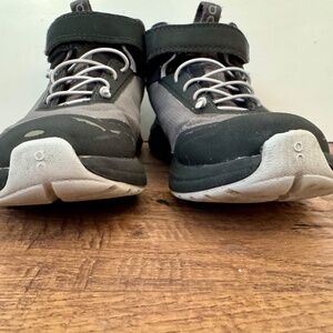 On Cloud Cloudhero Mid Waterproof Shoes Black Gray Kids Size 13 - very good used condition as shown in photos - mainly some peeling on the toe of right shoe - does not affect structure of shoe - only cosmetic. Tons of life left!!!