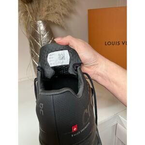The ON Cloud men's sneakers in size 10 are designed for running and activewear. They feature CloudTec technology, offering a lightweight and breathable experience. The sneakers come in black and are suitable for athletic activities. Condition is new.