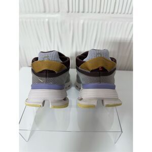 Flaws/Call Outs: general signs of wear to tread and inner heel pads. Small holes at inner heel pads, insoles and rest of overall shoe in very good condition. See photos for detailed condition.
