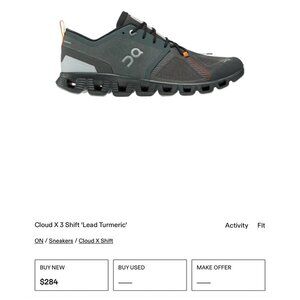 On Cloud X 3 Shift " Lead Tumeric" Men's Running Shoes Gray Size 8