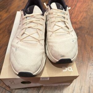 Signs of wear since shoes are white. Light marks, etc. lots of life left. Size 9. Comes with box. Cloudtilt